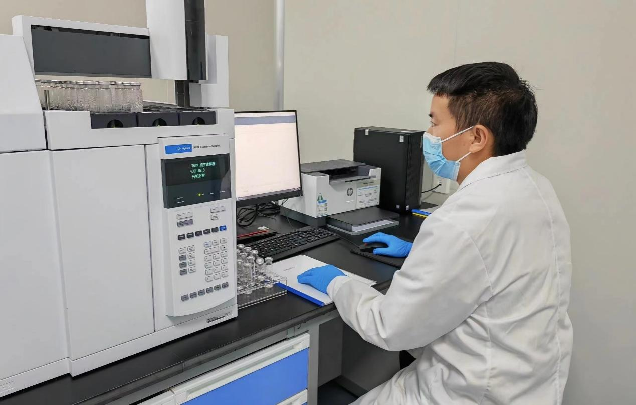 ▲化学工程师王祥对预处理后的样品进行上机测试