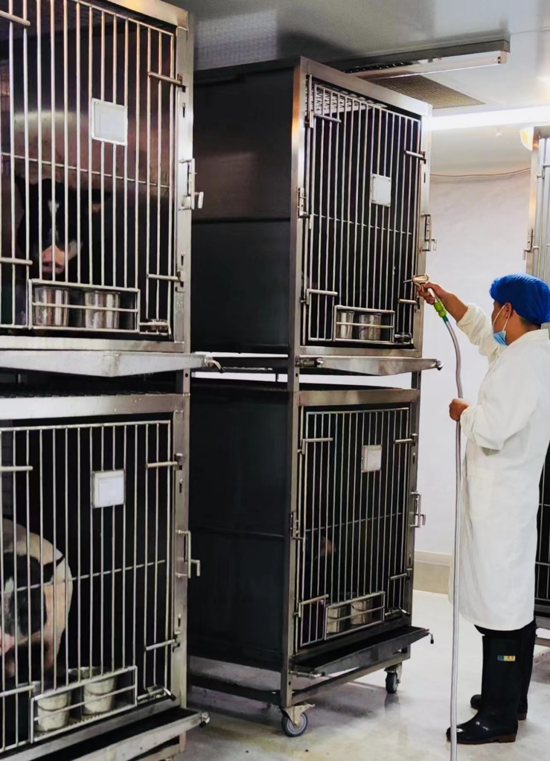▲工程师在动物饲养间进行卫生清洁工作