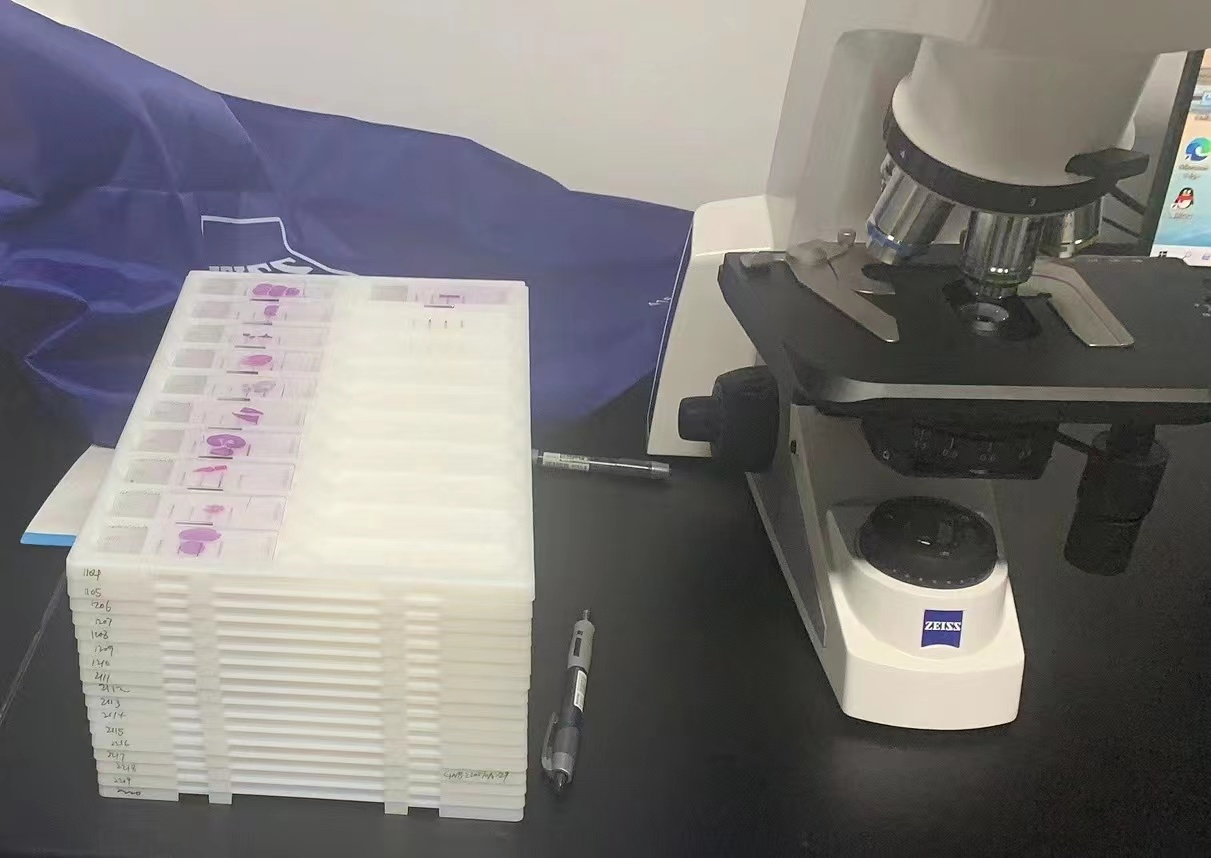 ▲面对大量待处理的样本,李跃利用一切时间进行阅片工作