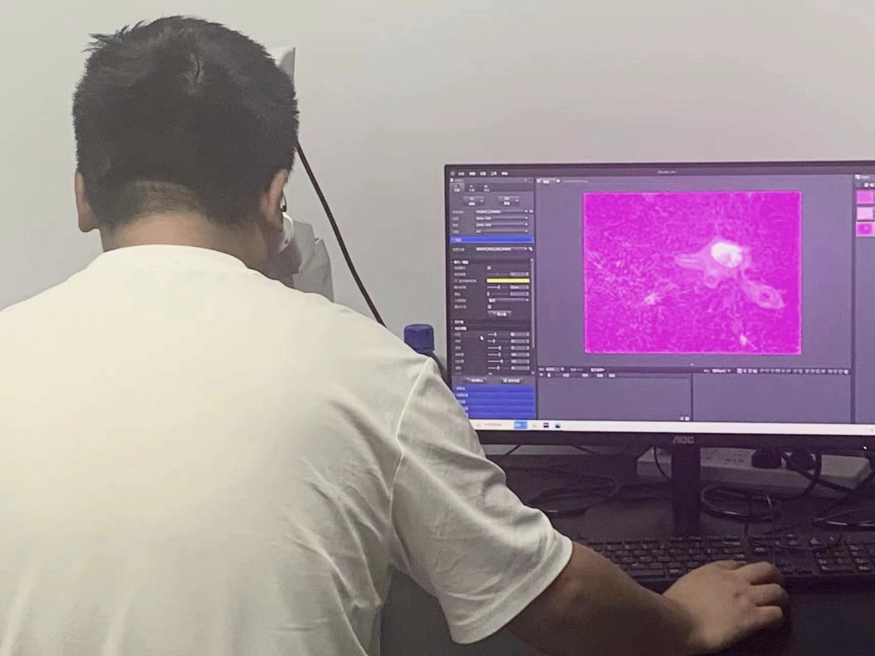 ▲病理工程师徐明发为封控在各地的同事进行线上培训