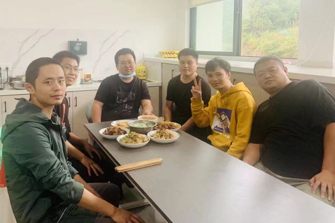 ▲因封控而居住在公司的同事们自己动手,庆祝中秋佳节